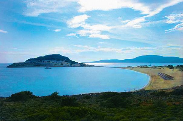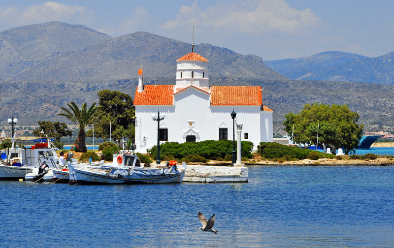 Elafonisos is by far the largest inhabited island in the Peloponnese archipelago, and the only one that is a separate municipality. There are also some archaeological discoveries to explore on the island and in the surrounding waters. The main church of the community is Agios Spyridon, which is built on a tiny separate piece of land which is connected by a bridge over shallow waters to the rest of the island. The community’s land area also includes 3 km2 (1 sq mi) of the mainland consisting mainly of the famous Punta Beach.