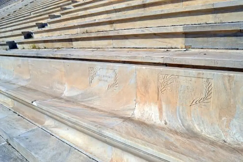 Among the first attempts to revive the idea of the Olympic Games were the games organized in the Panathenaic Stadium in 1870 and 1875, on the occasion of the Zappeian Olympiads, exhibitions of Greek products with sponsorship from the benefactor of the Nation, Evangelis Zappas. This idea was brought to fruition by Baron Pierre de Coubertin, a French aristocrat with a sound classical education, who organized the International Olympic Conference in Paris, in 1894. President of the Conference and plenipotentiary of the Panhellenic Gymnastics Association was Demetrios Vikelas, who persuaded the delegates that the first modern Olympic Games should be held in the Greek capital in 1896. The Panathenaic Stadium was chosen to host the Olympic Games and was the epicentre of the city’s preparations for this major event. The enormous expense of reconstructing the Stadium was undertaken largely by another benefactor of the Nation, Georgios Averoff. His marble portrait statue, to the right of the entrance to the Stadium, was carved by the sculptor Georgios Vroutos.