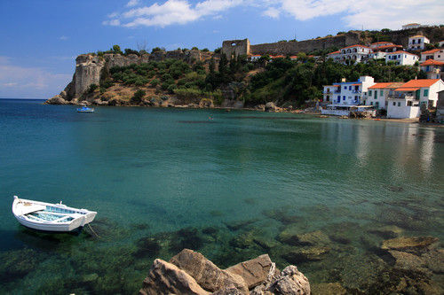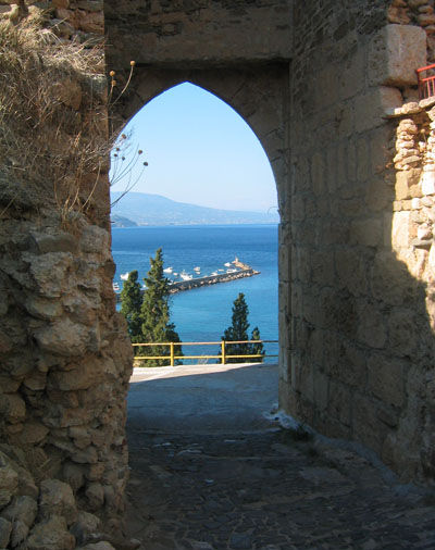 The castle occupies the headland to the east of the modern town and is built on the ruins of the ancient Messenian town of Asine. It was erected in the 6th or 7th century A.D., and was used all through the Byzantine period. Koroni was captured by the Venetians in 1206 and was used as a supplying centre. In 1500 the castle was occupied by the Turk Bayazit Pasha and remained under Turkish domination until 1686 when it was recaptured by the Venetians. In 1715, when the Venetians left the Peloponnese, the castle was again dominated by the Turks who kept it until 1828, when it was liberated by the French general Maison.