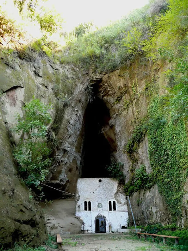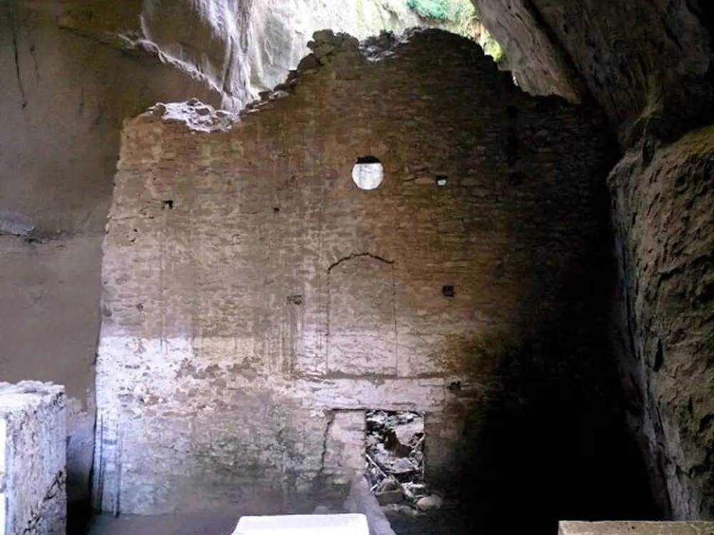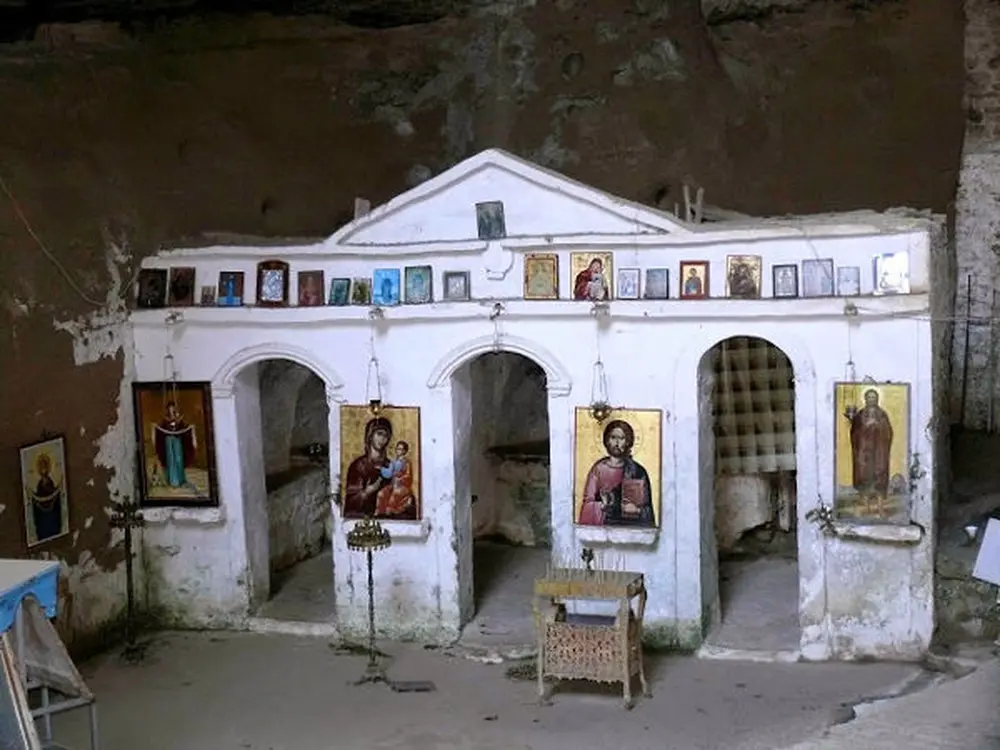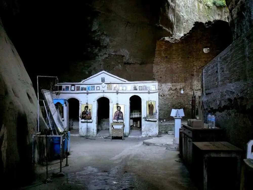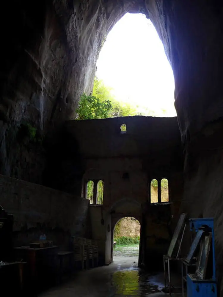 Nobody knows when exactly the little church was built, but the remains of an older building perhaps of the original Monastery are still visible at the back exit of the rock. Drops of damp hang by the dark rocky dome. The Monastery celebrates on the 31st of August, when a devout vigil takes place there.