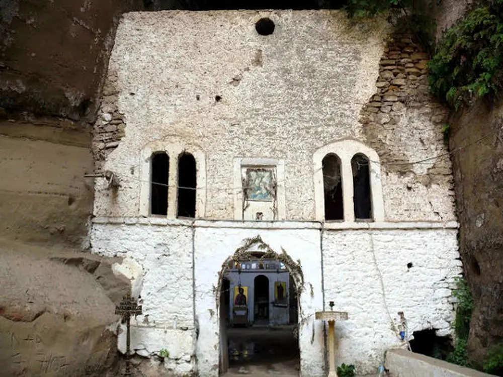 Many years ago, a pious hermit lived in this solitary place on goat milk and fruits from the wild trees. A night with a full moon, a hunter came and waited in ambush for animals. The hermit was looking for food crawling through the grass. The hunter heard the noise and shot. Then he waited patiently for the daybreak to find his game. The blood led him to the corpse of the hermit, who had crawled to the rock and had died there. The story runs that he was holding an icon of Virgin Mary in his hands. Holy water spurted from his blood. Even nowadays, the faithful drink it to be cured from various diseases.