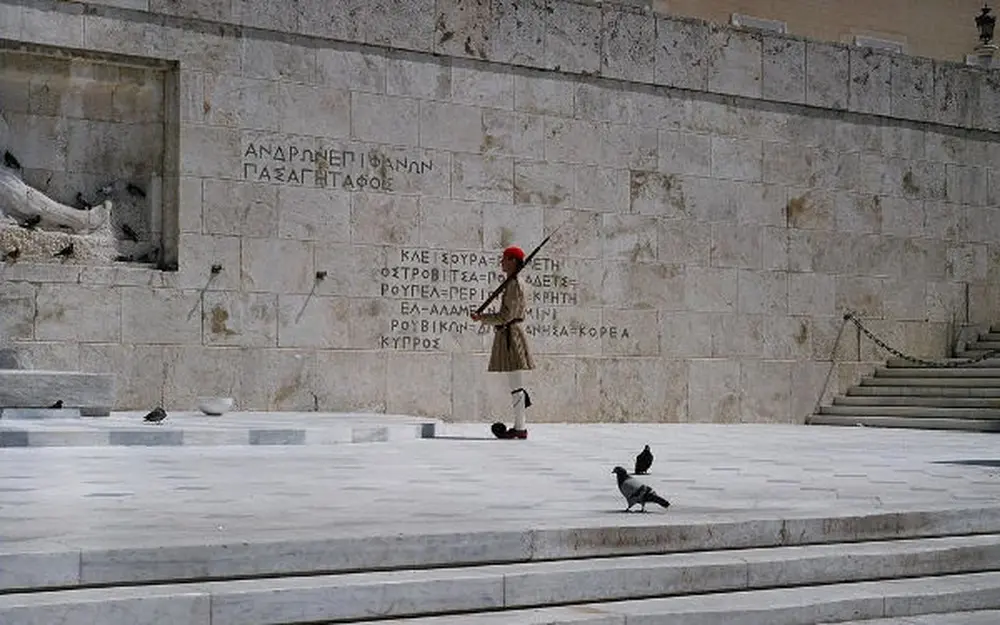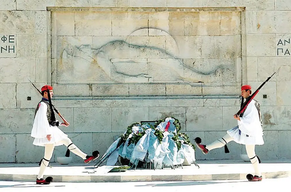 Athens’ Tomb of the Unknown Soldier (Mnēmeíon Agnōstou Stratiōtou) commemorates all those Greek soldiers who died in service of their country over its long history. Among its inscriptions are quotes from Pericles Funeral Oration as written by Thucydides in his History of the Peloponnesian War : ‘and one bed is carried empty / made for the unknown ones.’ During major holidays, politicians and officials lay wreaths at the tomb.